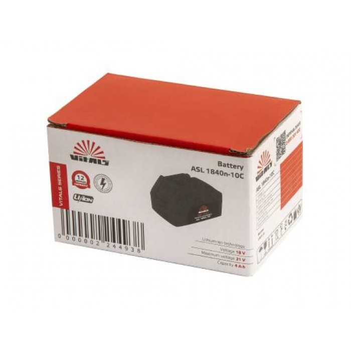 Батарея аккумуляторная Vitals ASL 1840n-10С разработана для работы в условиях повышенных нагрузок, что делает ее идеальной для требующего от источника питания значительных показателей мощности инструмента.