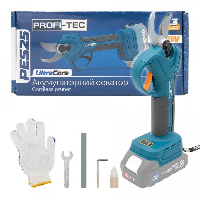 Аккумуляторный секатор PROFI-TEC PES25 – это компактный инструмент для аккуратной и контролируемой обрезки садовых культур. Благодаря сочетанию бесщеточной технологии, автономного питания и продуманной эргономики он обеспечивает чистый срез и стабильную работу при уходе за плодовыми деревьями, кустарниками и декоративными насаждениями. Особенности аккумуляторного секатора PROFI-TEC PES25: Бесщеточный двигатель 300 Вт обеспечивает стабильную мощность, долговечность конструкции и эффективную работу. Два режима резки 15 мм и 25 мм позволяют адаптировать инструмент к различной толщине веток и типу древесины. Частота резки 152 среза в минуту гарантирует высокую производительность и оперативное выполнение работ в саду. Лезвия из высокоуглеродистой стали гарантируют чистый срез и долговечность при интенсивной нагрузке. Система управления одной кнопкой упрощает переключение режимов и обеспечивает интуитивное управление инструментом. Фиксатор лезвий в закрытом положении гарантирует безопасность при хранении и транспортировке инструмента. Эргономичная рукоятка с противоскользящим покрытием обеспечивает надежный хват и комфорт при длительной работе. Легкий и сбалансированный корпус снижает нагрузку на кисть и позволяет работать в труднодоступных зонах. Комплект поставки: Аккумуляторный секатор PROFI-TEC PES25; Абразивный точильный камень; Защитные перчатки; Туба со смазкой; Шестигранный ключ; Гаечный ключ; Инструкция по эксплуатации; Гарантийный талон; Упаковка – картонная коробка; Без аккумулятора и зарядного устройства.