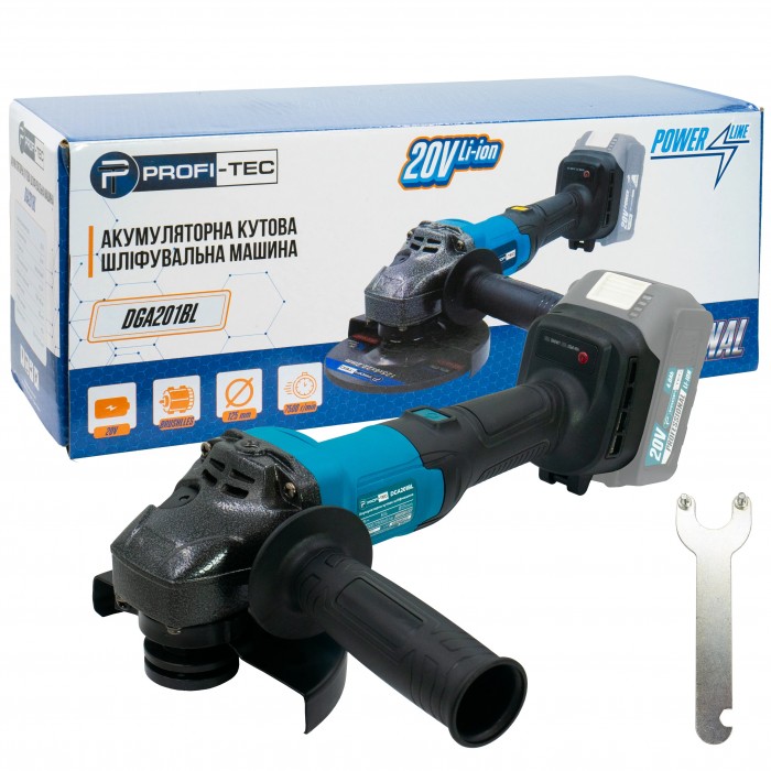 Аккумуляторная угловая шлифовальная машина PROFI-TEC DGA201BL POWERLine (без аккумулятора и зарядного устройства)