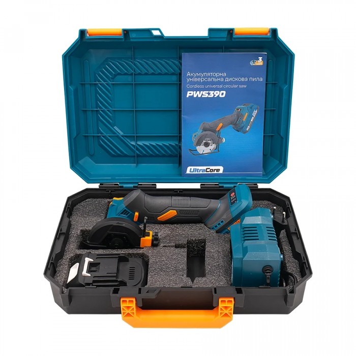 Аккумуляторная универсальная дисковая пила PROFI-TEC PWS390 – это компактный и маневренный инструмент, предназначенный для выполнения точных прямых и наклонных пропилов в древесине, пластиках, композитах, гипсокартоне и тонколистовом металле в пределах установленной глубины. Благодаря бесщеточному двигателю, высокой частоте вращения и малому весу обеспечивает контролируемую резку, высокую точность и удобство работы в условиях ограниченного пространства. Особенности аккумуляторной универсальной дисковой пилы PROFI-TEC PWS390: Бесщеточный двигатель мощностью 390 Вт обеспечивает стабильный крутящий момент и поддерживает производительность под нагрузкой. Трехступенчатая регулировка оборотов позволяет подбирать скоростной режим в соответствии с плотностью и структурой материала. Пильный диск диаметром 76 мм обеспечивает контролируемую глубину врезания и точную траекторию реза по разметке. Глубина резания 22 мм подходит для технологического раскроя панелей, ламината и листовых композитных материалов. Регулируемый угол резания до 45° обеспечивает возможность выполнения наклонных пропилов и угловых монтажных соединений. Металлическая опорная скоба стабилизирует инструмент на заготовке, уменьшает отклонение линии реза и повышает точность подачи. Кнопка блокировки пуска исключает случайное включение инструмента и повышает безопасность при подготовке к работе. Антивибрационные вставки на рукоятке стабилизируют удержание инструмента и уменьшают нагрузку на кисть оператора. Защитный кожух закрывает режущий узел и снижает риск контакта с вращающимся диском, поддерживая безопасные условия эксплуатации. Легкая, сбалансированная конструкция сочетает компактность и эргономичность, обеспечивая удобство в труднодоступных местах. Комплект поставки: Аккумуляторная универсальная дисковая пила PROFI-TEC PWS390; Аккумулятор PT2520MP (2.5 Ач) ×1; Зарядное устройство BC20V; Отрезной диск ×5; Инструкция по эксплуатации; Гарантийный талон; Пластиковый кейс.