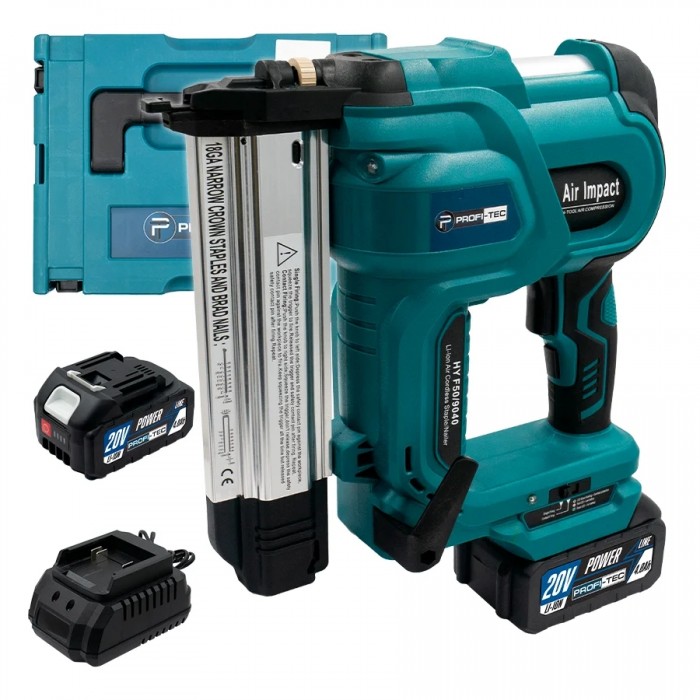 Аккумуляторный гвоздезабиватель/степлер PROFI-TEC PPT20BL POWERLine (2×PT2040MP (4.0 Ач), зарядное устройство)
