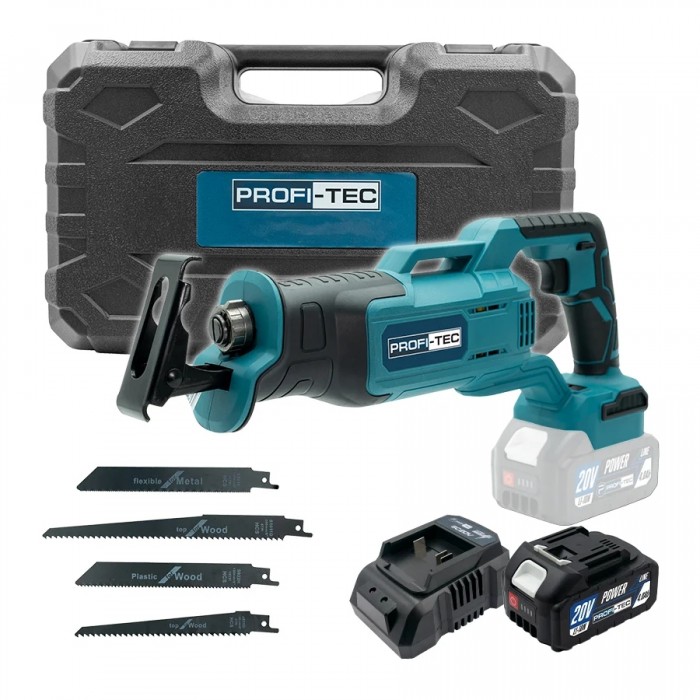 Аккумуляторная сабельная пила PROFI-TEC BJR2022 – предназначена для распила древесины, металла, пластика и других материалов при строительных и ремонтных работах, используется для быстрого демонтажа конструкций, резки труб, обрезки веток и других задач, где требуется точный и быстрый рез. Особенности аккумуляторной сабельной пилы PROFI-TEC BJR2022: Полотна можно быстро и легко заменить благодаря бесключевой системе фиксации, что экономит время и усилия, повышая безопасность за счёт отсутствия необходимости в дополнительных инструментах; Рукоятка с прорезиненным покрытием обеспечивает надёжный и удобный захват, снижает вибрационную нагрузку и повышает комфорт и контроль при длительной работе с инструментом; Длина хода пильного полотна составляет 22 мм, что оптимально для выполнения большинства задач по распилу различных материалов, обеспечивая эффективную и быструю работу; Бесщеточный двигатель отличается высокой эффективностью и долговечностью, требует минимального технического обслуживания и обеспечивает стабильную работу пилы на протяжении длительного времени; Совместимость с универсальными типами полотен позволяет использовать широкий спектр пильных элементов для работы с деревом, металлом, композитными и синтетическими материалами; Большая максимальная глубина пропила — до 250 мм в древесине, 120 мм в пластиковых изделиях и 12 мм в металле — делает пилу эффективной для глубоких распилов за один проход. Комплект поставки: Аккумуляторная сабельная пила PROFI-TEC BJR2022; Аккумулятор PT2040MP (4.0 Ач) ×1; Зарядное устройство BC20V; Пильные полотна ×4; Инструкция по эксплуатации; Гарантийный талон; Пластиковый кейс.