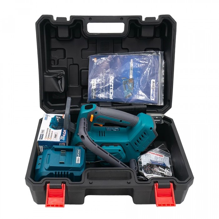 Аккумуляторная цепная пила PROFI-TEC PCS1220 – это сочетание мощности, эргономики и технологической надежности для эффективной работы на приусадебном участке, строительстве или коммунальном хозяйстве. Благодаря бесщеточному двигателю, сбалансированной конструкции и продуманной системе безопасности, инструмент обеспечивает точный рез и комфортную эксплуатацию без лишних усилий. Особенности аккумуляторной цепной пилы PROFI-TEC PCS1220: Бесщеточный двигатель мощностью 1200 Вт обеспечивает высокую производительность, стабильную скорость и пониженный нагрев. Шина длиной 30 см оптимизирована для быстрого резания веток, бревен и древесины малого и среднего диаметра. Скорость цепи 12 м/с гарантирует чистый пропил и стабильную производительность при обрезке или заготовке древесины. Скорость вращения 6500 об/мин обеспечивает оптимальную мощность для уверенного резания любой плотности материала. Автоматическая система смазки снижает трение, защищает цепь и продлевает ресурс всего пильного узла. Бесключевая регулировка натяжения цепи обеспечивает быстрое обслуживание без использования дополнительных инструментов. Защитная кнопка предупреждает случайный запуск, обеспечивая дополнительный уровень безопасности при хранении и транспортировке. Передний щиток обеспечивает механическую защиту оператора в случае обратного удара или непредвиденного обрыва цепи. Цифровой дисплей отображает уровень заряда аккумулятора, позволяя контролировать время автономной работы. Конструкция с эргономичными зонами хвата минимизирует нагрузку на руки и повышает управляемость при длительном резе. Комплект поставки: Аккумуляторная цепная пила PROFI-TEC PCS1220; Пильная цепь ×1; Пильная шина 30 см ×1; Аккумулятор PT2040EP (4.0 Ач) ×1; Зарядное устройство BC20V; Инструкция по эксплуатации; Гарантийный талон; Пластиковый кейс.