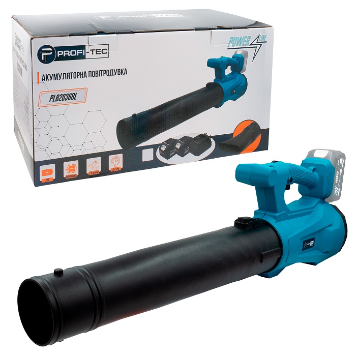 Аккумуляторная воздуходувка PROFI-TEC PLB2036BL  — мощная модель предназначенная для сметки мусора, опавших листьев, растительных отходов в кучу, очистка труднодоступных мест от мусора и пыли, выдувание опилок в мастерских. Особенности аккумуляторной воздуходувки PROFI-TEC PLB2036BL: Мощный двигатель обеспечивает высокий объем и скорость воздуха; Компактный и легкий инструмент для работы одной рукой; Количество оборотов холостого хода плавно регулируется в широком диапазоне; Низкий уровень шума; Рациональное потребление энергии в зависимости от текущей нагрузки продлевает срок службы батарей; Поскольку насадки оборудования легко демонтируются, воздуходувка не занимает много места при хранении; Вся линейка инструментов PROFI-TEC POWERLine совместима и работает от батарей MAKITA LXT. Комплект поставки: Аккумуляторная воздуходувка PROFI-TEC PLB2036BL; Сопло; Инструкция по эксплуатации; Гарантийный талон; Упаковка – картонная коробка; Без аккумулятора и зарядного устройства.