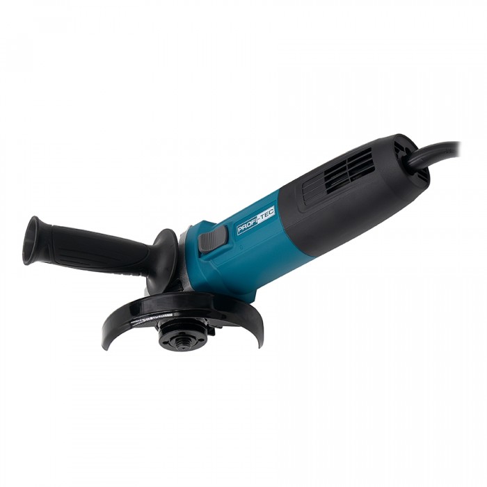 Угловая шлифовальная машина PROFI-TEC AG125-850  – надежный и удобный инструмент, предназначенный для резки, шлифовки и зачистки металла, камня и других твердых материалов. Благодаря компактному корпусу, удобному хвату и оптимальному балансу, она обеспечивает комфортную и эффективную работу как в мастерской, так и на объекте. Особенности угловой шлифовальной машины PROFI-TEC AG125-850: Мощный двигатель на 850 Вт обеспечивает высокую производительность при резке и шлифовании различных материалов. Скорость вращения 11500 об/мин гарантирует точный рез и стабильное качество обработки твердых и абразивных поверхностей. Корпус редуктора из алюминиевого сплава эффективно отводит тепло и выдерживает значительные механические нагрузки. Эргономичная рукоятка с прорезиненным покрытием обеспечивает надежное удержание и контроль при длительной работе. Система охлаждения защищает двигатель от перегрева, продлевает срок службы и позволяет работать без перерывов. Сниженный уровень вибрации и шума уменьшает усталость и нагрузку на слух, обеспечивая комфорт во время работы. Усиленный кабель питания длиной 2 метра устойчив к износу, истиранию и механическим повреждениям. Компактная форма корпуса и малый вес позволяют удобно работать одной рукой и в труднодоступных местах. Комплект поставки: Угловая шлифовальная машина PROFI-TEC AG125-850; Защитный кожух; Дополнительная боковая рукоятка; Рожковый ключ; Инструкция по эксплуатации; Гарантийный талон; Упаковка – картонная коробка.