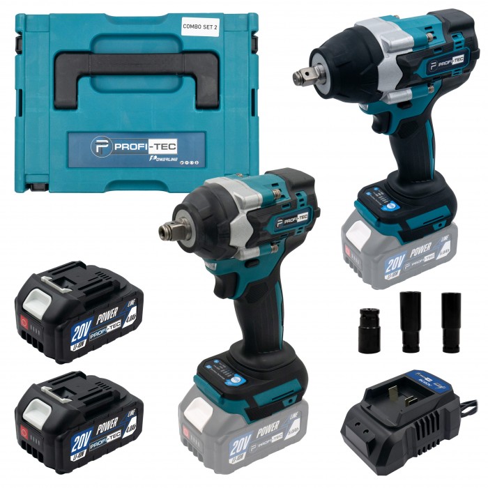 PROFI-TEC Combo Set 2/4 - універсальний набір, що поєднує два потужні гайковерти для виконання широкого спектра завдань. Завдяки оптимальній комбінації компактності, потужності та сучасних функцій, цей комплект стане незамінним помічником як для точних робіт, так і для завдань із високими навантаженнями. Особливості акумуляторного набору інструментів PROFI-TEC Combo Set 2/4: Обидва гайковерти мають зручний корпус із прогумованим покриттям, що забезпечує комфортне тримання, запобігає ковзанню в руках і захищає інструмент від пошкоджень; DTW500BL (350 Нм) – оптимальний вибір для монтажних робіт із середніми кріпленнями, наприклад, складання конструкцій або обслуговування техніки; DTW800BL (700 Нм) – потужний і надійний інструмент для важких завдань, зокрема роботи з великими болтами та кріпленнями, демонтажу з'єднань із високим зусиллям затягування; Чотири режими швидкості дають змогу налаштувати обертання відповідно до складності завдання – від точного затягування до роботи на максимальній потужності; Вбудоване підсвічування забезпечує рівномірне освітлення робочої зони, що особливо зручно при роботі в умовах недостатнього освітлення; Безщітковий двигун гарантує високу потужність, енергоефективність, мінімальний знос компонентів і стабільну роботу навіть при значних навантаженнях. Комплект постачання: Акумуляторний гайковерт PROFI-TEC DTW500BL; Акумуляторний гайковерт PROFI-TEC DTW800BL; Акумулятори PT2040MP (4.0 Аг) ×2; Зарядний пристрій BC20V; Набір головок (19, 21, 22 мм); Інструкція з експлуатації; Гарантійний талон; Пластиковий кейс.