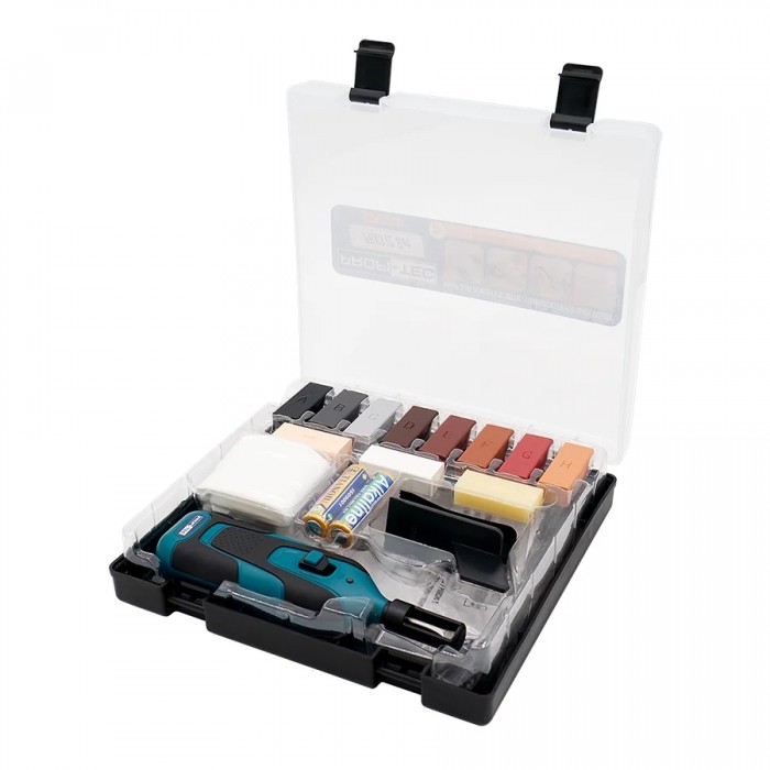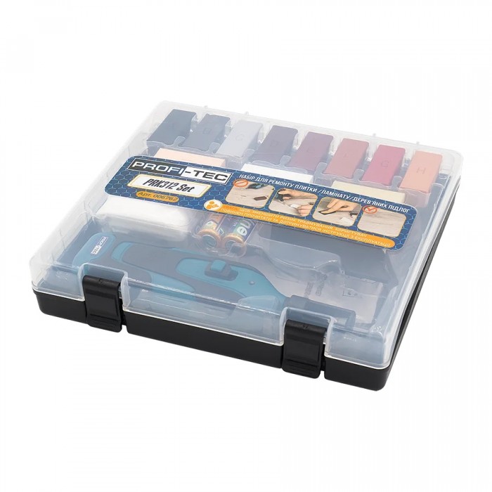 Набір для ремонту PROFI-TEC PRK312 Set - це спеціалізований інструмент, призначений для локального ремонту твердих поверхонь, що зазнали механічних пошкоджень, зокрема подряпин, вм’ятин і відколів. Він підходить для дерев’яних і ламінованих покриттів, таких як підлога, меблі, двері та вікна, а також для плитки, мармуру, декоративного каменю, керамічних виробів і декоративних елементів, відновлюючи їх цілісність і зовнішній вигляд. Особливості набору для ремонту PROFI-TEC PRK312 Set: Можливість швидкого ремонту без необхідності демонтажу або заміни пошкодженого елемента; Воскові стрижні різних відтінків забезпечують точний підбір кольору для природного вигляду поверхні; Зручність у використанні, не потребує спеціальних навичок, підходить для самостійного ремонту; Безпечний для матеріалів, восковий склад не пошкоджує покриття та забезпечує довговічний ефект; Працює на батарейках, що забезпечує мобільність і не вимагає підключення до електромережі. Комплект постачання: Набір для ремонту PROFI-TEC PRK312 Set; Батарейки AA ×2; Скребок для вирівнювання; Зігнутий скребок для очищення; Абразивна губка; Тканина для чищення; Воскові стрижні ×11; Інструкція з експлуатації; Гарантійний талон; Пластиковий органайзер; Упаковка - картонна коробка. Для досягнення найкращих результатів під час ремонту дотримуйтеся наступних рекомендацій: Перед нанесенням воску очистьте та знежирте поверхню, щоб забезпечити надійне зчеплення матеріалу; Для точного підбору кольору обирайте найближчий відтінок або змішуйте кілька стрижнів для максимальної відповідності; Наносьте віск тонкими шарами та поступово додавайте матеріал, щоб рівномірно заповнити пошкодження; Після висихання використовуйте скребок або губку, щоб акуратно вирівняти поверхню та усунути надлишки; Завершіть обробку поліруванням, щоб зробити відремонтовану ділянку гладкою та непомітною.