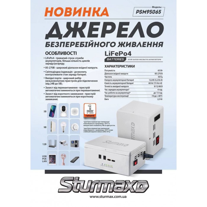 Гарантійні зобов’язання: на джерела безперебійного живлення Sturmax діє гарантія 12 місяців.